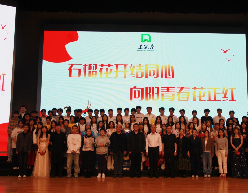 为全面铸牢中华民族共同体意识,进一步促进各民族师生交往交流交融,热烈欢迎2025级新生以及少数民族同学加入到建筑系大家庭,9月27日中午,由建筑系团总支举办的“石榴花开结同心 向阳青春花正红”迎新晚会在文化艺术中心举行。学院党委副书记、工会主席胡铁成,党委委员、宣传统战部部长石海涛,学生工作部副部长、团委副书记刘化军,建筑系党总支书记林浪,系主任金锦花,以及建筑系承训教官们与2025级新生共同观看了此次晚会。